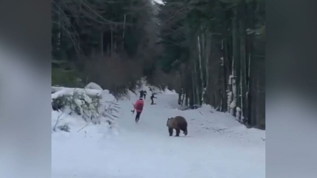 Romaniassa tapahtui 25. tammikuuta kiperä tilanne, kun metsästä saapunut karhu lähti yllättäen tiellä kulkeneen hiihtäjän perään.