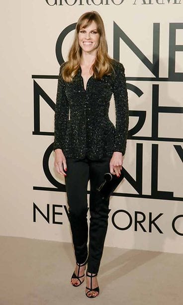 Klassisista vaatteistaan tunnettu italialainen muotitalo Armani järjesti muotinäytöksen, jota seuraamaan saapuivat kuuluisuudet näyttelijä Hilary Swankista huippumalli Coco Rochaan.