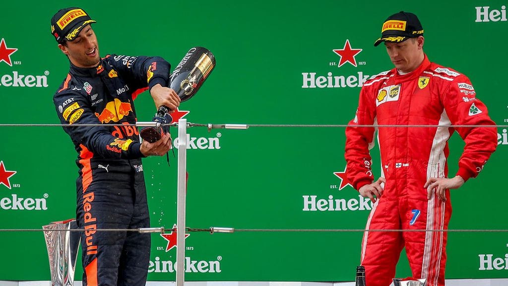 Ricciardo juhlisti voittoaan perinteisesti juomalla samppanjaa kisakengästään – eli nauttimalla "shoeyn". Palkintopallilla olleet suomalaiset Valtteri Bottas ja Kimi Räikkönen eivät osallistuneet huviin.