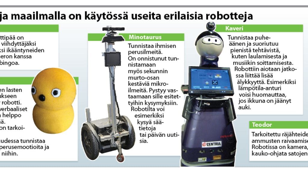 – Niiden määrä ylittää lähivuosina teollisuusrobottien määrän. Ainakin Saksassa hoivarobotteja jo käytetään vanhainkodeissa, hän kertoo.