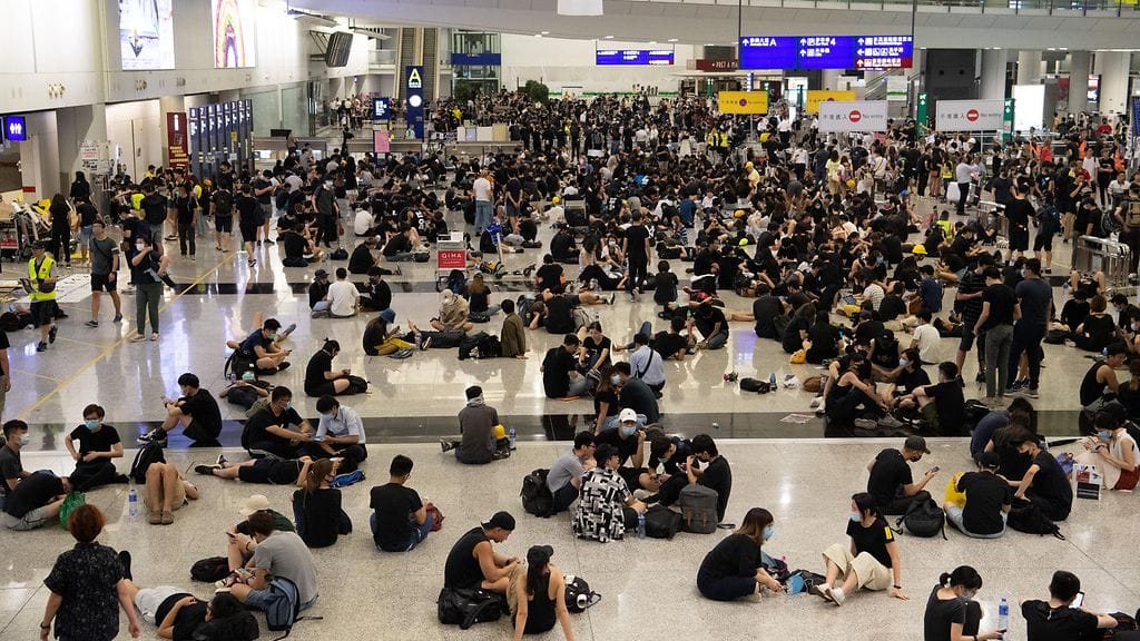 Maailman vilkkaimpiin kuuluva Hongkongin lentokenttä jouduttiin sulkemaan maanantaina, kun tuhannet mielenosoittajat kokoontuivat kentälle vastustamaan väkivaltaa, jota poliisit olivat aiemmin käyttäneet mielenosoitusten hajottamisessa.