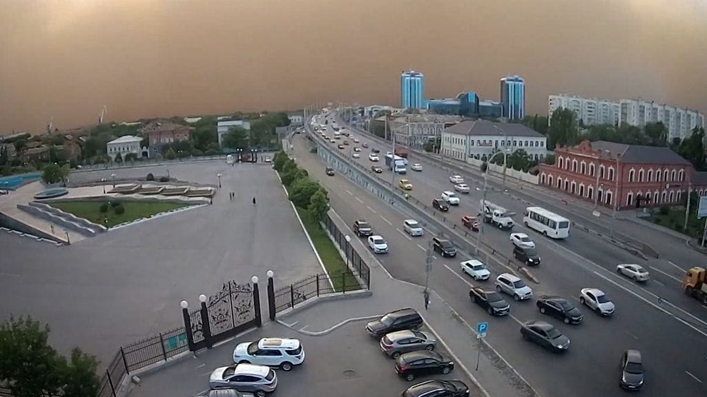 Venäjällä Astrakhanin kaupungin yli pyyhkäisi keskiviikkona satojen metrien korkuinen hiekkamyrsky.
