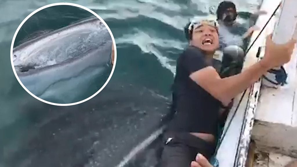 Videolta on nähtävissä kuinka snorklaajan ilme muuttuu hetkessä iloisesta hysteeriseksi.