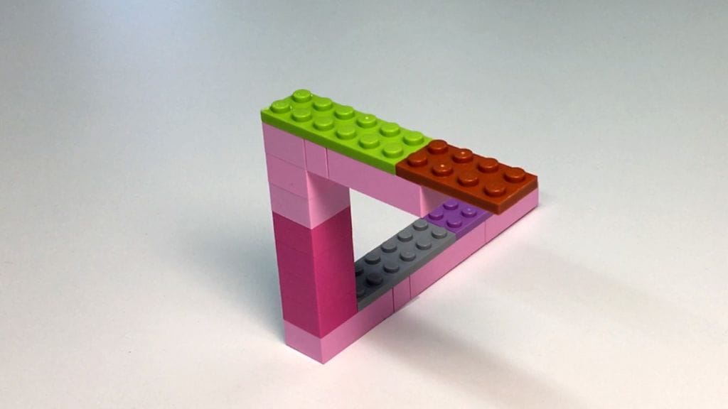 Legopalikoilla rakenteleminen on hauskaa ja kehittävää. Jos kotoasi löytyy tavanomaisia ja litteitä legoja, voit valmistaa "mahdottoman kolmion" – se huijaa aisteja, kun sitä katsoo tietystä kulmasta!