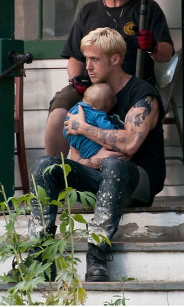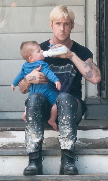 Onko mitään suloisempaa kuin komea mies sylissään söpö vauva? Ryan Gosling nähtiin syöttämässä pientä vastanäyttelijäänsä uuden elokuvansa kuvausten tauolla. Gosling kuvaa parhaillaan New Yorkissa The Place Beyond The Pines -leffaa, joka kertoo rikolliselle uralla kääntyvästä perheenisästä.