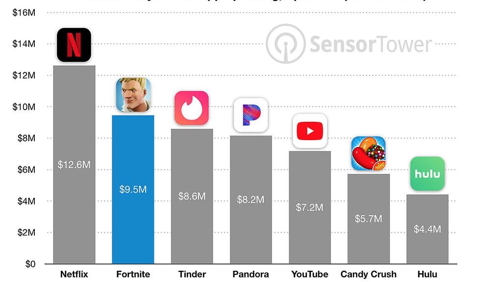 Toistaiseksi vain iOS:lle julkaistu Fortnite Battle Royale -mobiilipeli tuotti kehittäjilleen ensimmäisen kuukauden aikana 25 miljoonaa Yhdysvaltain dollaria, eli rahtusen yli 20 miljoonaa euroa. Jo pelkän huhtikuun aikana Fortnite on tehnty tulosta 9,5 miljoonan verran, ja vain huippusuosittu suoratoistopalvelu Netflix pärjäsi uutuuspeliä paremmin 12,6 miljoonallaan.