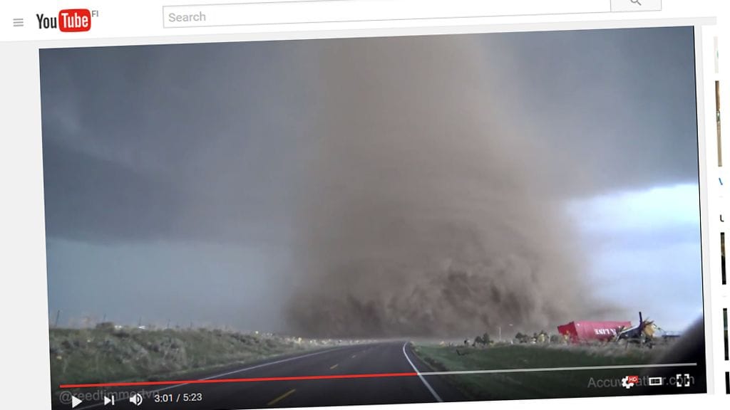 Autoilija tallensi videolle hirmuisen tornadon aivan lähietäisyydeltä.
