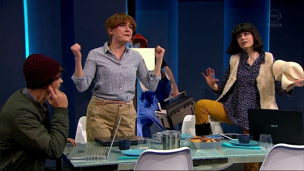 Näyttelijät pääsivät esittämään sketsin musikaaliversiona, ruotsin kielellä, Jouko Turkan ohjaamana versiona sekä 30 sekunnin pikaversiona.