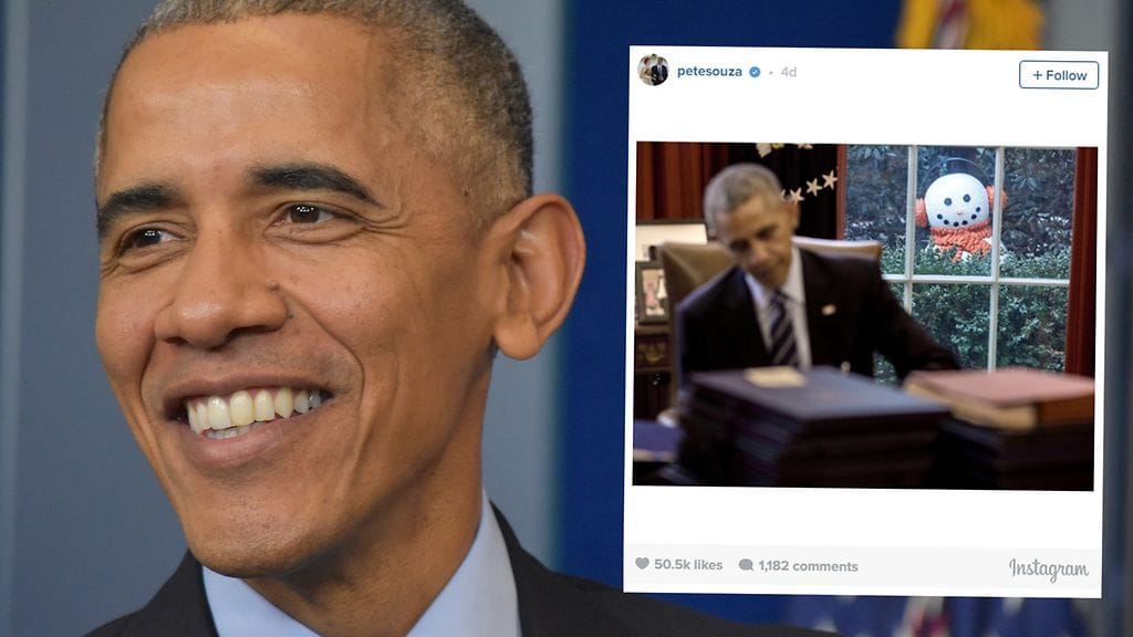 Obaman perhettä kahdeksan vuoden ajan kuvannut Valkoisen talon valokuvaaja Pete Souza kertoo Instagramissa, että Valkoisen talon työntekijät tarttuivat tietoon ja alkoivat pilailla Obaman kustannuksella.