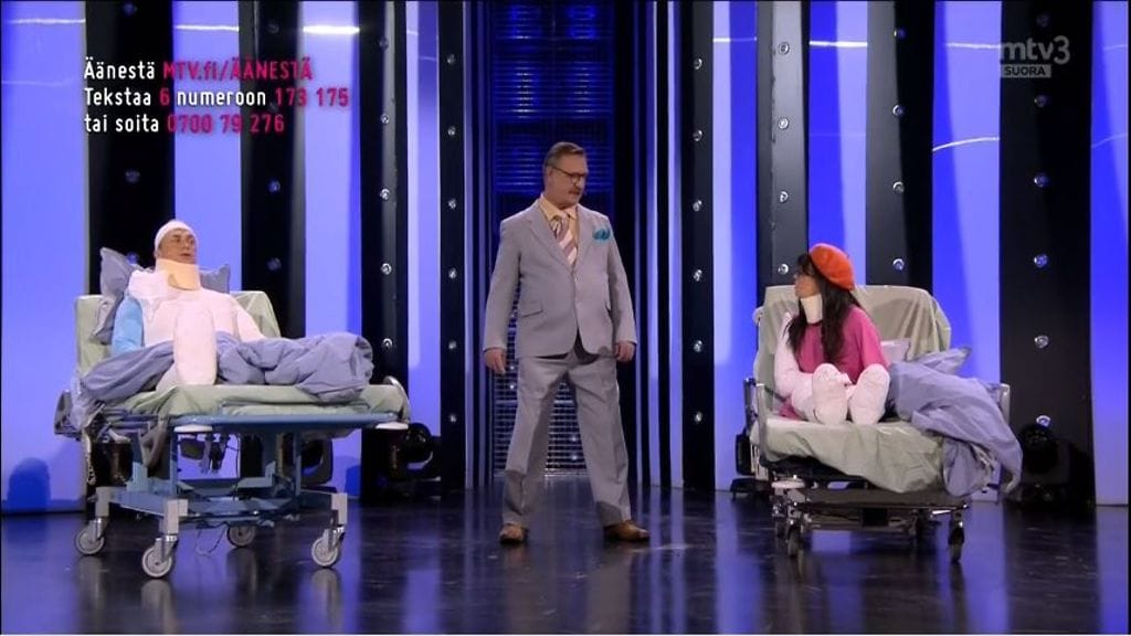 Putouksessa mies pääsi Maaria Nuoranteen esittämän sketsihahmo Päivi Viemään saippuasarjaan mukaan. Kovero esitti illan jaksossa Vesa Viemää, joka on Päivi Viemää -hahmon isä.