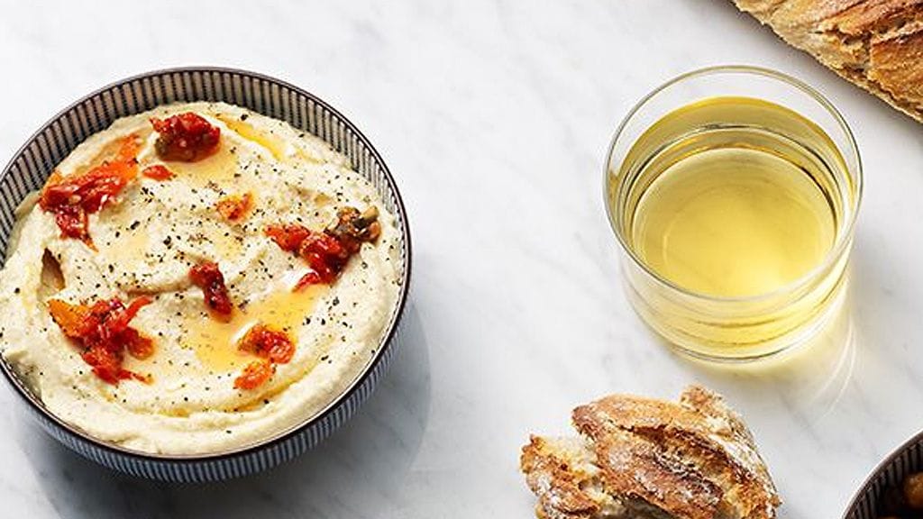 Hummus on dippi kikherneistä. Olemme tuunanneet sen tällä kertaa parmesanilla ja artisokalla.