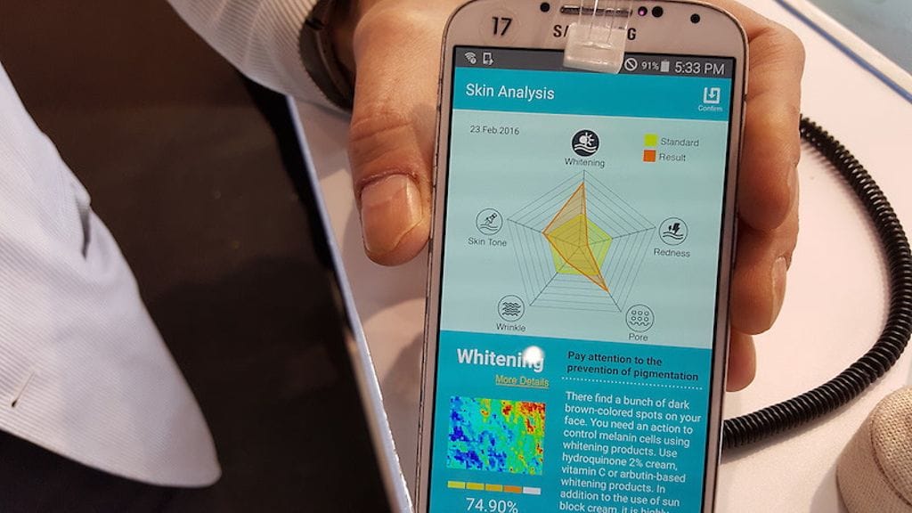 Korealaisvalmistaja esitteli osastollaan myös Nurugo Derma -laitetta, joka niin ikään toimii älypuhelimen kameran lisäosana.