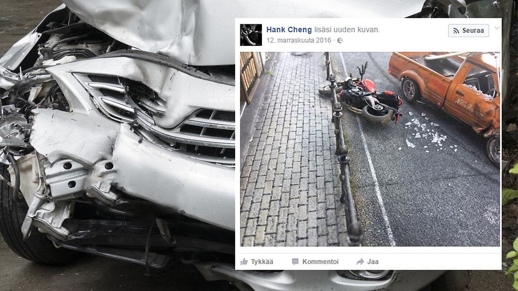 Moottoripyörä törmäsi lava-auton kylkeen. Kauhea pamaus olisi huolestuttanut varmasti koko korttelin, ellei tämä olisi tapahtunut pienoismallien maailmassa.