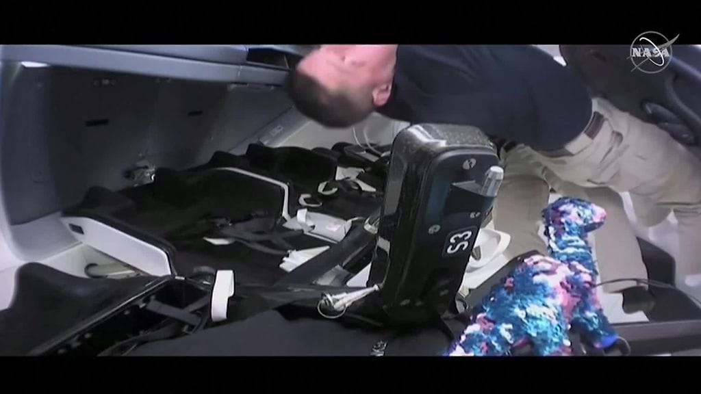 Virallisesti astronautit esittelivät salamatkustajan vasta, kun Dragon-alus oli ollut kiertoradalla muutaman tunnin. Astronautit totesivat, että heillä on todellakin mukanaan lukuisin paljetein koristeltu, sinisen ja pinkin värinen Aptosaurus. Pehmolelun aidot esikuvat vaelsivat maapallolla 150 miljoonaa vuotta sitten. Pehmolelun voidaankin sanoa päässeen esikuviaan huomattavasti pidemmälle.