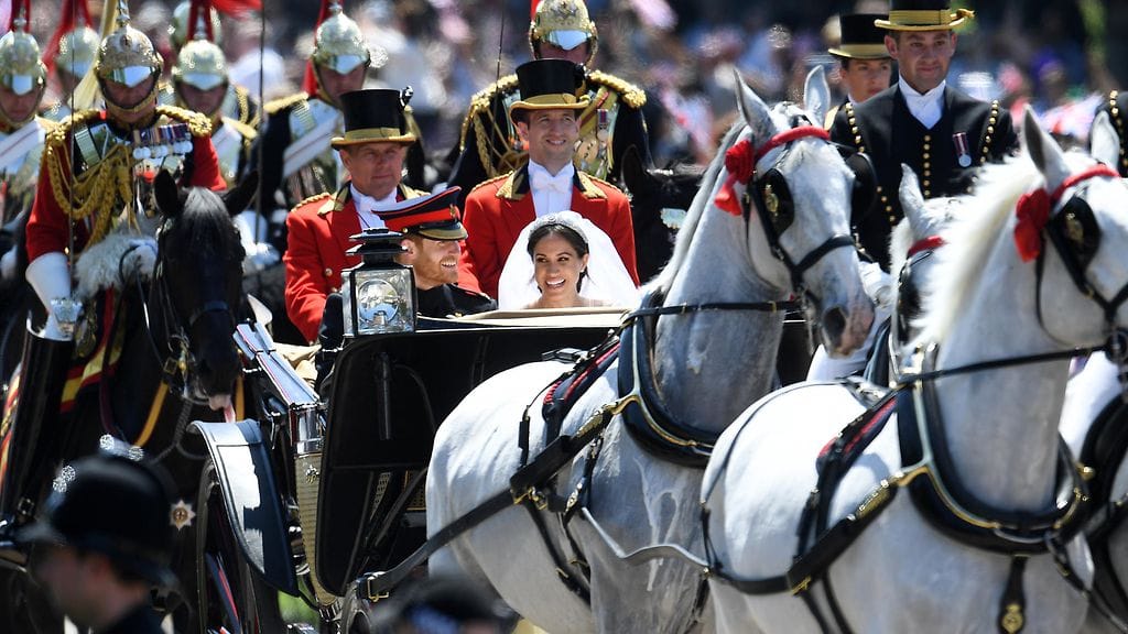 Uhkaava tilanne oli aikeissa syntyä kuninkaallisissa häissä, kun yksi prinssi Harryn ja herttuatar Meghanin vaunusaattueen hevosista oli aikeissa lähteä laukkaamaan hallitsemattomasti.