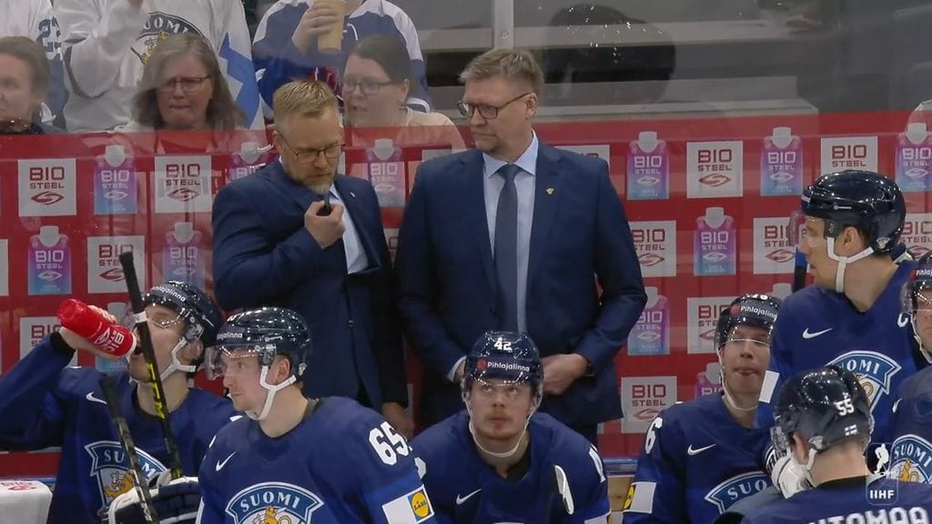 Hetken päästä TV-kuvissa vilahti hetki, kun Leijonien apuvalmentaja Mikko Manner sai viestin korvanappiinsa. Hän antoi nopeasti käskyn Suomen joukkueen kapteenille Marko Anttilalle, joka asteli tuomariston luo.