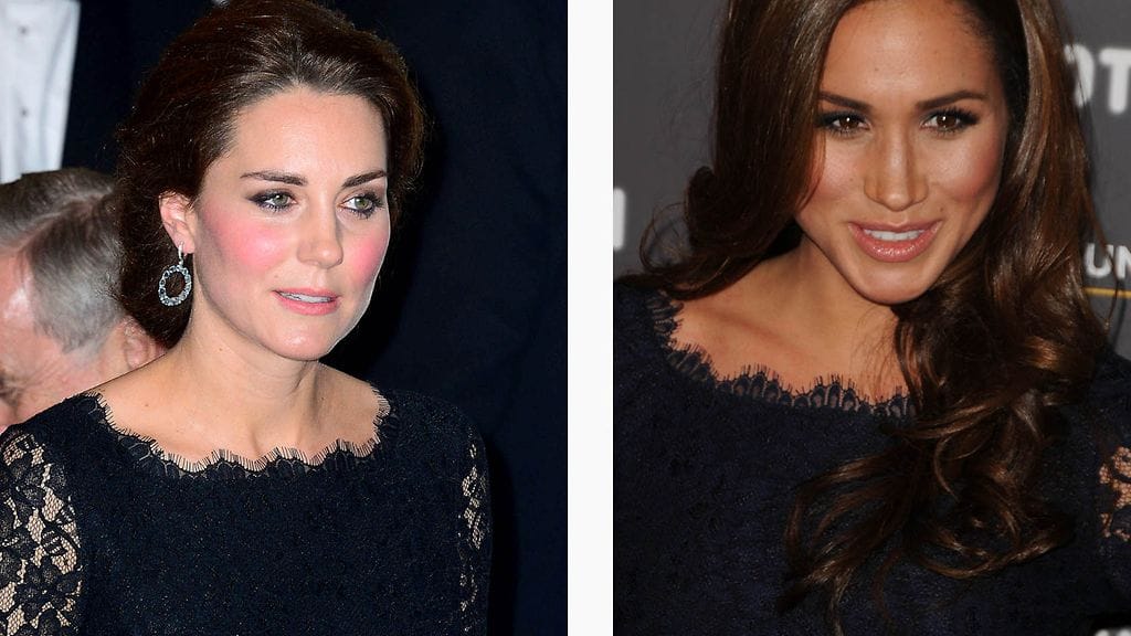 Hauskasta sattumasta raportoi Hello-lehden muotisivusto, joka kertoo prinssi Harryn tyttöystäväksi nimetyn näyttelijäkaunotar Meghan Marklen ja prinssi Williamin vaimon, herttuatar Catherinen edustaneen saman suunnittelijan mekossa.