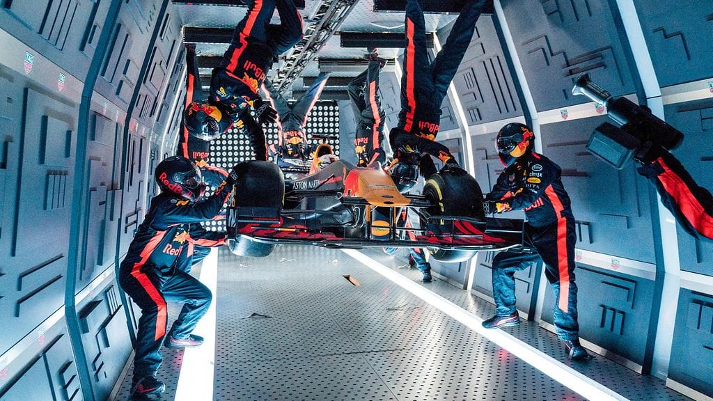 Red Bullin F1-talli toteutti uskomattomasti renkaanvaihtoharjoituksia painottomassa tilassa.