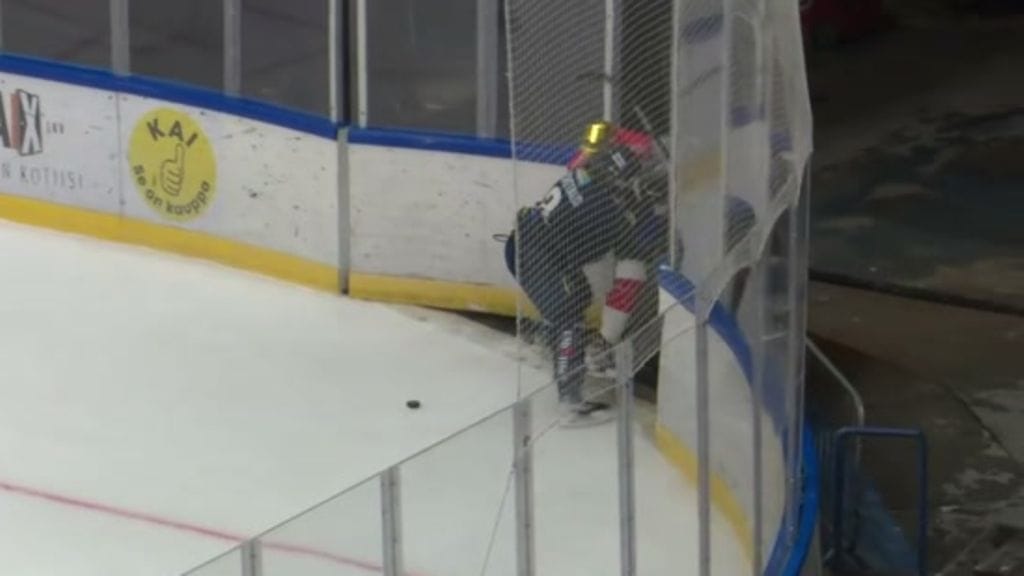Kiekko-Espoon ja Peliittojen Mestis-ottelussa nähtiin hurja tilanne, kun Espoon Metro Areenan kaukalon kulmaovet pettivät Kiekko-Espoon Miro Keskitalon taklauksen voimasta.