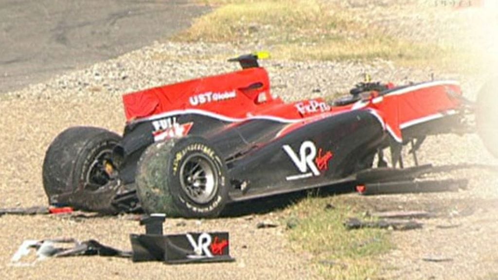 Auto osui reunamuuriin ja romuttui pahoin, mutta kuljettaja ei loukkaantunut. Di Grassi ei pysty osallistumaan kilpailuun.