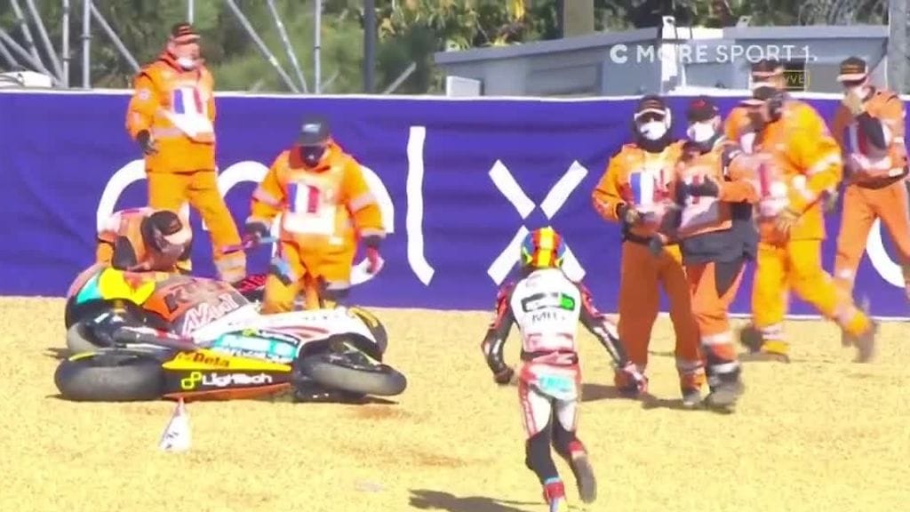 Vaaratilanne sai alkunsa, kun suomalaisen Red Bull KTM Ajo -tallin Jorge Martin kaatui radan kolmannessa mutkassa. Hetkeä myöhemmin Navarro meni nurin vastaavassa kohdassa ja espanjalaisen pyörä sinkoutui kohti ratavirkailijoita, jotka olivat tulleet siirtämään aiemmin kaatuneen Martinin pyörää.