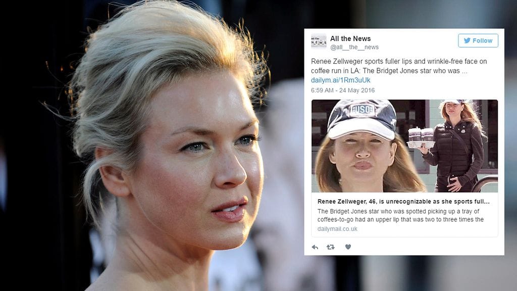Persoonallisista kasvonpiirteistään tunnettu Zellweger järkytti faninsa lokakuussa 2014 edustamalla lähes tunnistamattomana. Tuolloin hän ei myöntänyt kauneusleikkauksia, ja kuittasi keskustelun hupsuna.