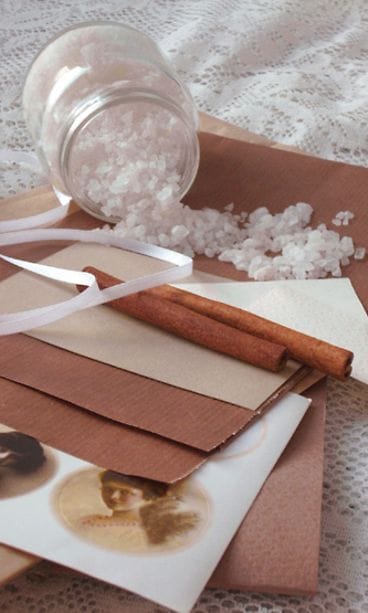 1. Kaada astiaan karkeaa merisuolaa ja hajusta se muutamalla tipalla tarkoitukseen sopivaa hellävaraista eteeristä öljyä tai pienellä määrällä valmista kylpysuolaa.