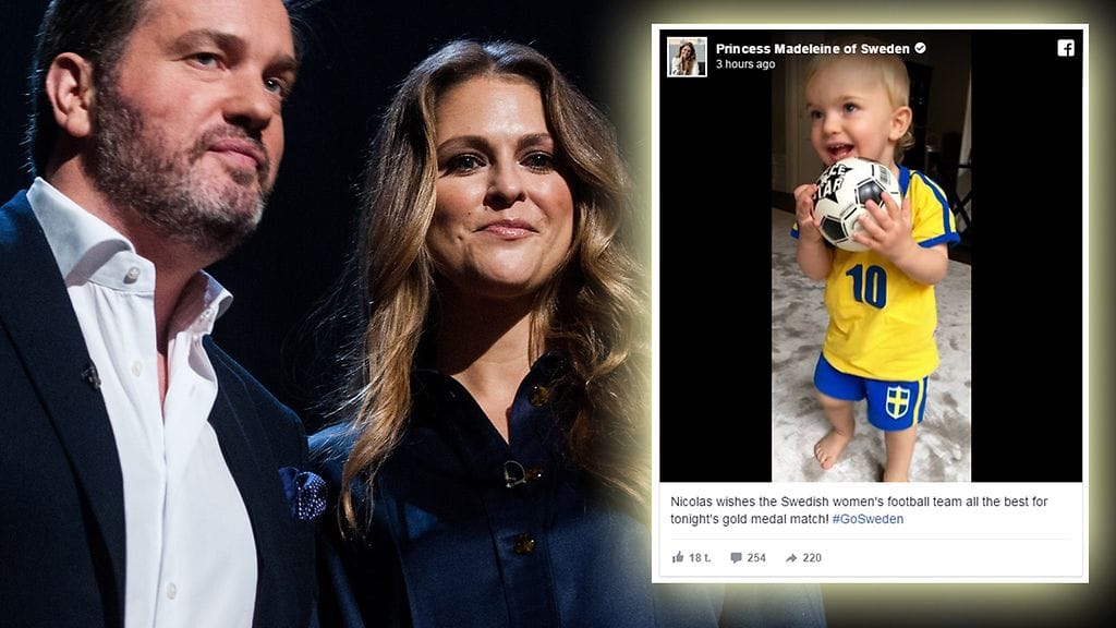 – Nicolas toivottaa Ruotsin naisten jalkapallomaajoukkueelle onnea olympiafinaaliin, Madeleine kirjoittaa statuksessa.
