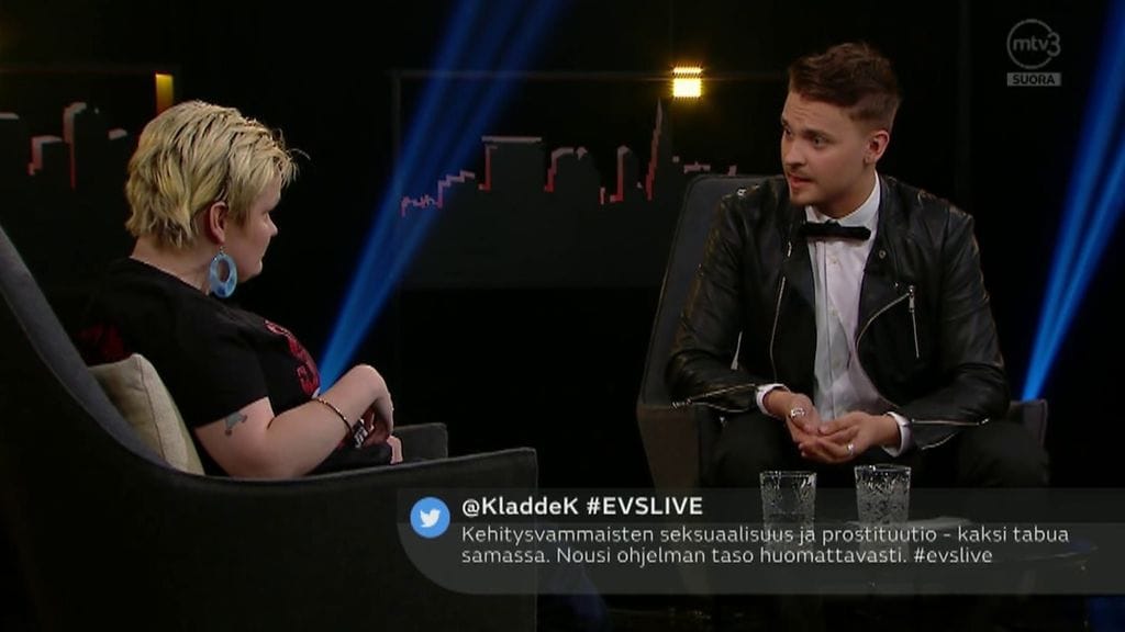 Heljä Hesso avautui kauden viimeisessä Enbuske, Veitola & Salminen lähetyksessä vammaisten seksuaalisuudesta. Herkkä haastattelu kosketti ja keräsi kehuja.