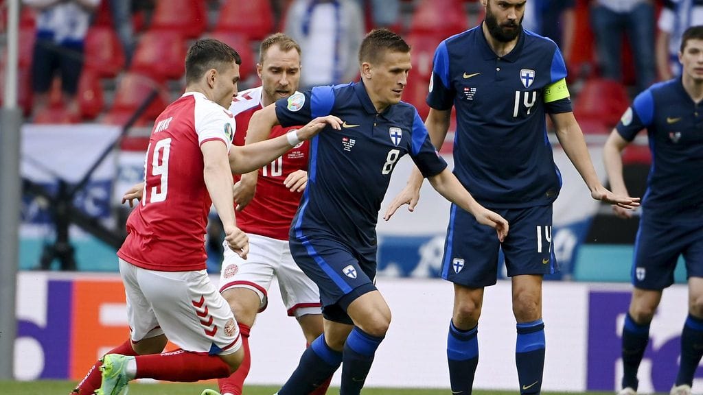 Ottelu jouduttiin keskeyttämään, kun Tanskan tähtipelaaja Christian Eriksen tuupertui kentän pintaan ja menetti tajuntansa. Erikseniä elvytettiin pitkään kentällä, kunnes hänet kiidätettiin sairalaan.