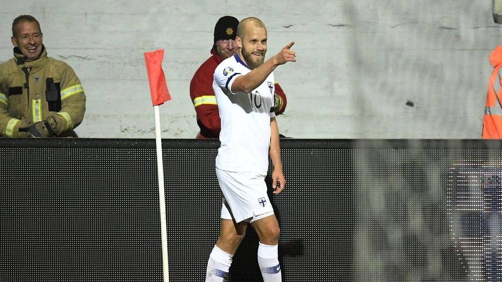 Reilun puolen tunnin pelin jälkeen avauskokoonpanoon nostettu Fredrik Jensen pääsi tuikkaamaan kulmapotkun jälkitilanteesta ottelun avausmaalin. Armenian maalivahti Aram Hayrapetyan kurotti kädellään palloon, jonka Jensen pääsi nostamaan suoraan maaliin.