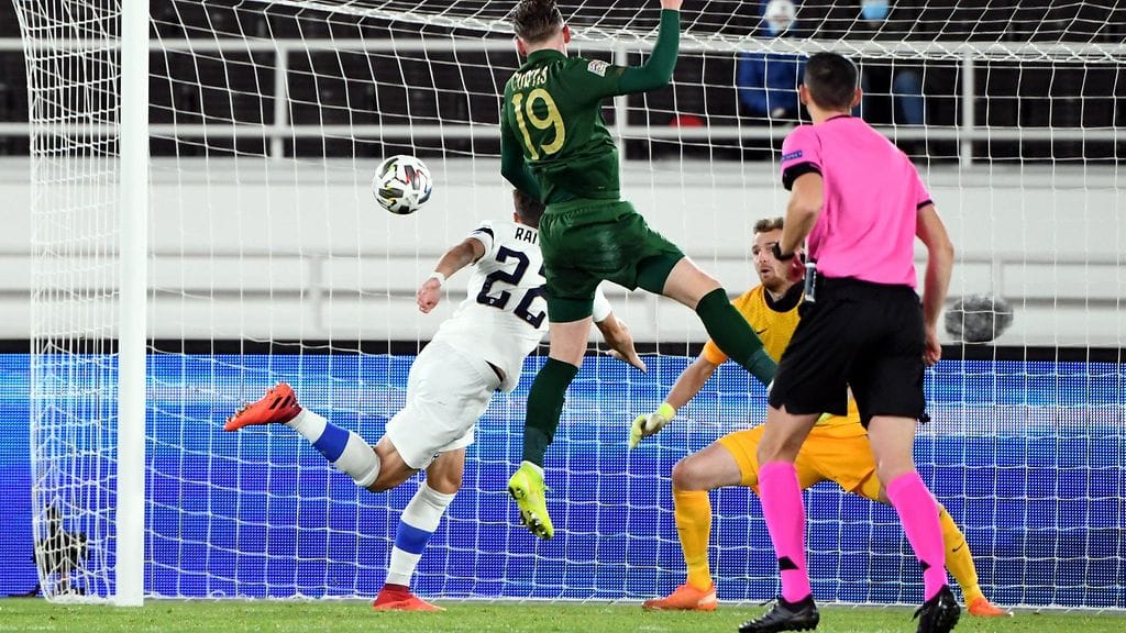 Irlannin vaihtopelaaja Ronan Curtis pääsi puskemaan avopaikasta, ja osa vierasjoukkueen pelaajista oli jo tuulettamassa maalia, kun Hradecky kauhaisi pallon upealla venytyksellä aivan tolpan juuresta.