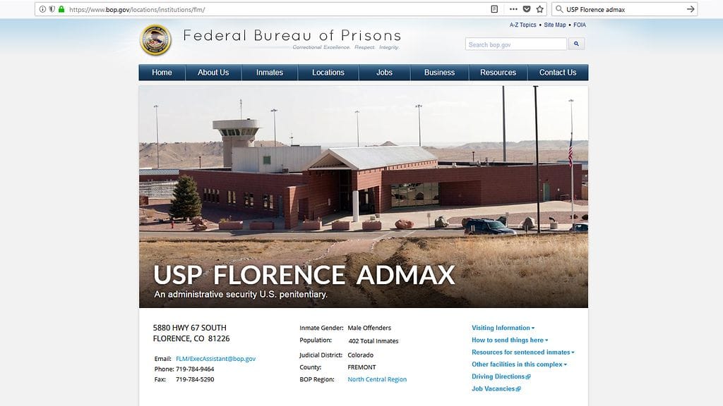 Coloradon supermax-vankilassa on ollut muun muassa murhista tuomittu Thomas Silverstein, joka valitti vankilaoloistaan vuonna 2007. Hän kertoi olevansa 24 tuntia vuorokaudessa valvonnan alaisena 2,6 x 3,0 kokoisessa sellissä eli tilaa oli vajaat kahdeksan neliötä.