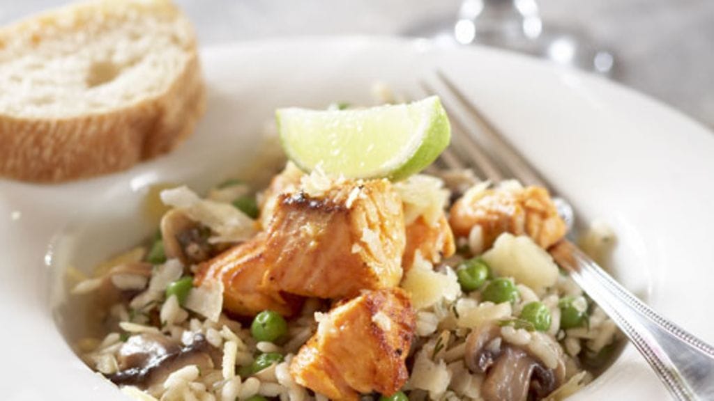 Kirjolohi-sienirisotto