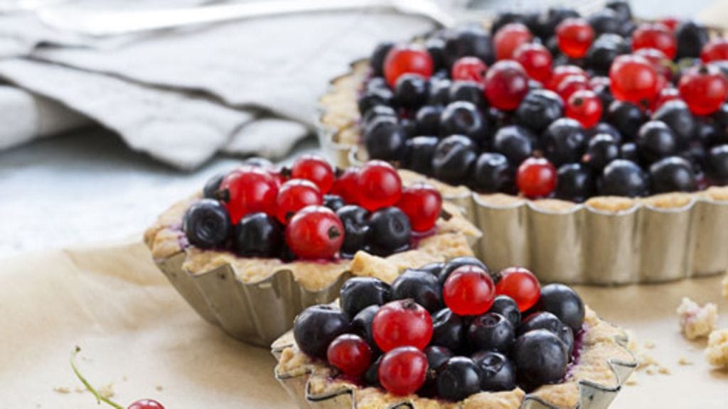 Paista torttuja 225-asteisen uunin toiseksi alimmalla tasolla noin 10 min. Koristele tortut jokaisen täytteen ohjeen mukaan.