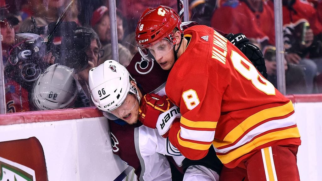 Välimäki oli Flamesin ensimmäisen kierroksen varaus vuodelta 2017. Hänet varattiin numerolla 16. Nhl.comin mukaan Calgaryn riveissä Välimäki on pelannut yhteensä 24 kausiottelussa, joissa hän on tehnyt yhden maalin ja saanut kolme tehopistettä.