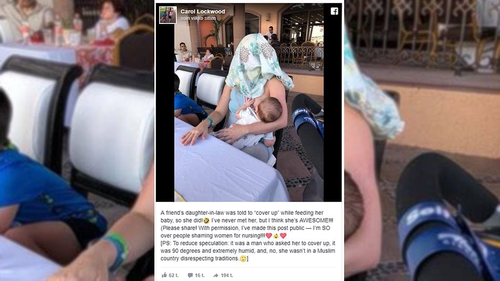 Viime viikolla amerikkalainen Melanie Dudley, 34, imetti nelikuista vauvaansa hotellin ravintolassa, lomamatkalla Meksikossa. Tuntematon mies lähestyi naista ja pyysi tätä peittämään itsensä.