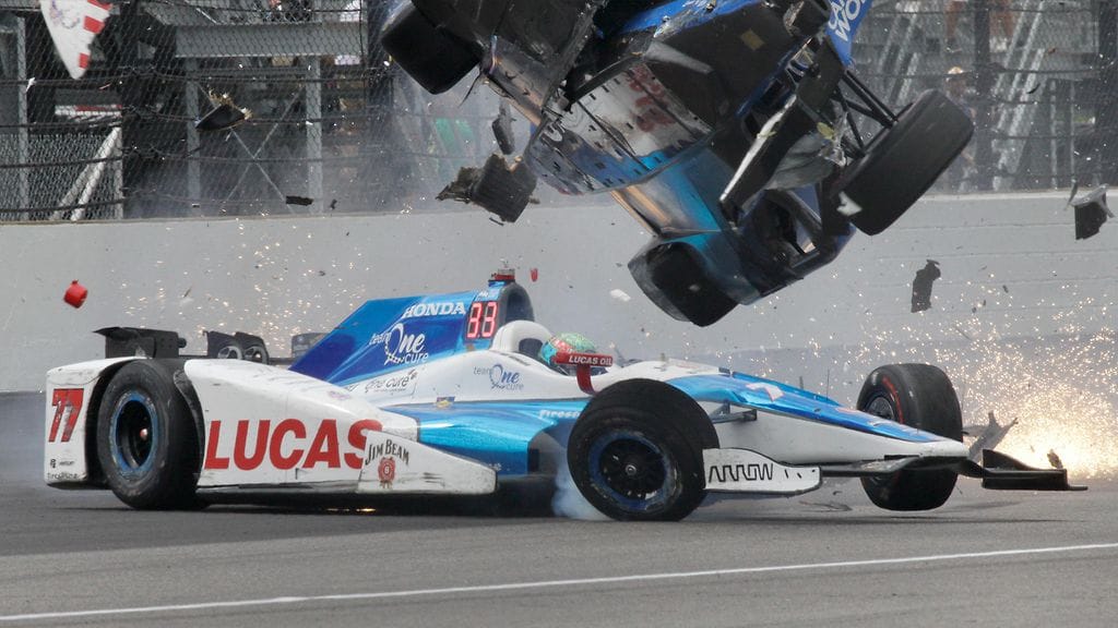 Pohjois-Amerikan legendaarinen Indianapolis 500 -kilpailu jouduttiin keskeyttämään sunnuntaina hetkeksi rajun onnettomuuden seurauksena.