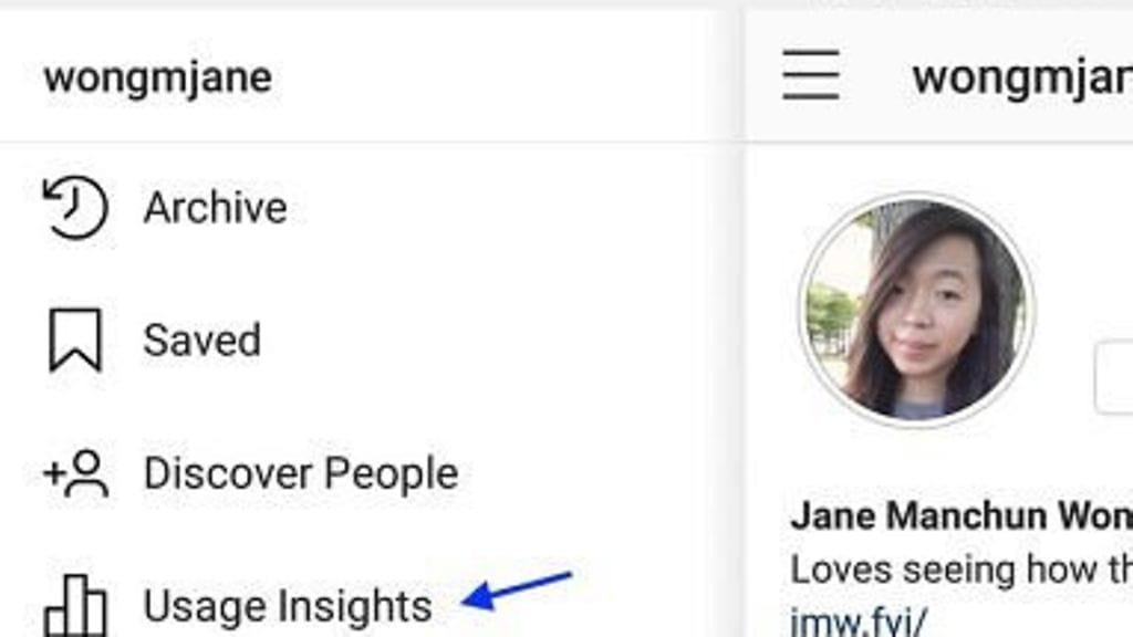 Instagram testaa parhaillaan myös profiilinäkymässä vasemmalta laidalta avautuvaa lisävalikkoa, josta myös linkki Usage Insightsiin löytyy.