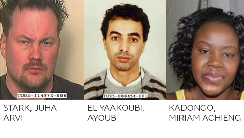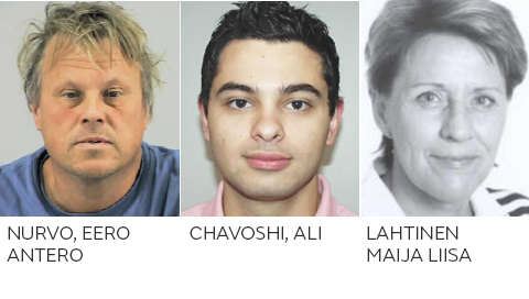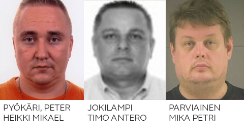 38-vuotiaan Peter Heikki Mikael Pyökärin rikosepäilyt ovat panttivangin ottaminen, törkeä kavallus ja varkaus. 51-vuotiasta Marokon ja Suomen kansalaista Ayoub El Yaakoubia etsitään puolestaan yli 20 vuotta sitten tapahtuneesta taposta. Häntä epäillään tyttöystävänsä surmasta.