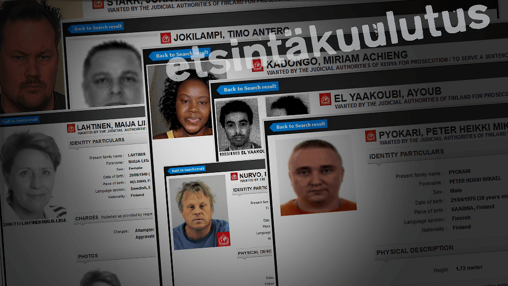 Yhdeksän Suomen kansalaista on tällä hetkellä kansainvälisen rikospoliisijärjestön Interpolin julkisella etsintäkuulutuslistalla.