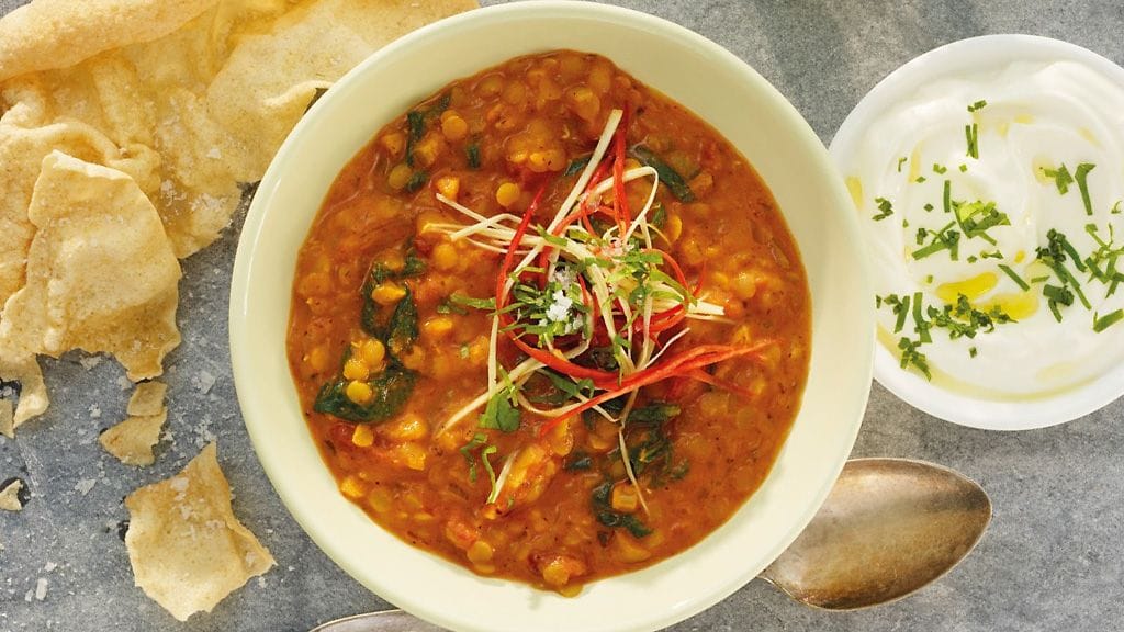 Voiko arkiruoka valmistua nopeammin? Tee vartissa maukas linssikeitto. Ihana intialainen linssikeitto, jossa mango chutneyta, garam masalaa ja inkivääriä.