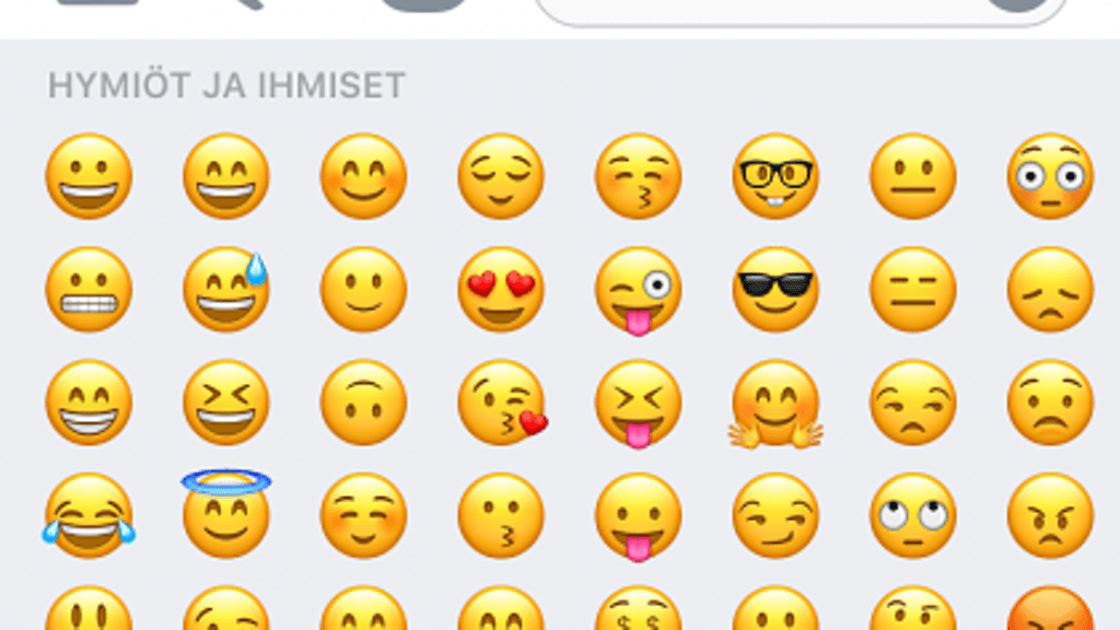 Kuvankaappaus iOS 10:n beetasta. Suosituimmat emojit saavat iOS 10:ssä uutta ilmettä. Aiempi tasainen keltainen korvautuu hehkeämmällä lookilla.