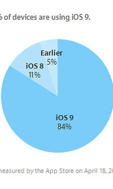 Jo ennen vuodenvaihdetta iOS 9 ehti kattamaan 66 prosenttia kaikista iOS-laitteista. Uusimmat App Storessa tehdyt mittaukset osoittavat, että kasvu on jatkunut. Tällä hetkellä iOS 9:llä on hallussaan jopa 84 prosentin laitekate.