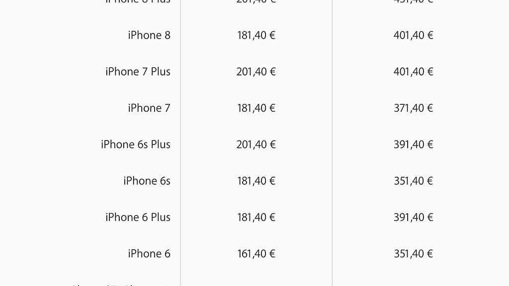 Myös muiden takuun ulkopuolisten vikojen kuin näytön korjaamisen hinta on iPhone X:n osalta korkeampi kuin aiemmille iPhone-malleille. Koko Applen iPhone-korjaushinnasto löytyy alta.