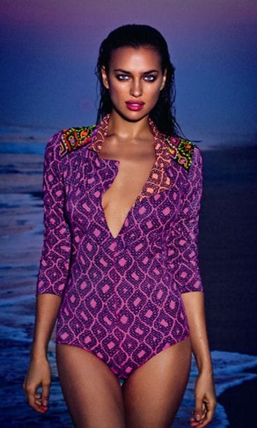 Venäläissyntyinen malli Irina Shayk, 26, on totuttu näkemään joko pikkubikineissä tai seksikkäissä alusvaatteissa, eikä ihme. Mallikaunotar komeilee tasaisin väliajoin erilaisissa julkaisuissa pintaa paljastaen ja bikineitä esitellen. Tällä kertaa Shayk poseeraa Agua Benditan vuoden 2013 uimapuvuissa syntisen, siltikin leikkisän seksikkäänä.
