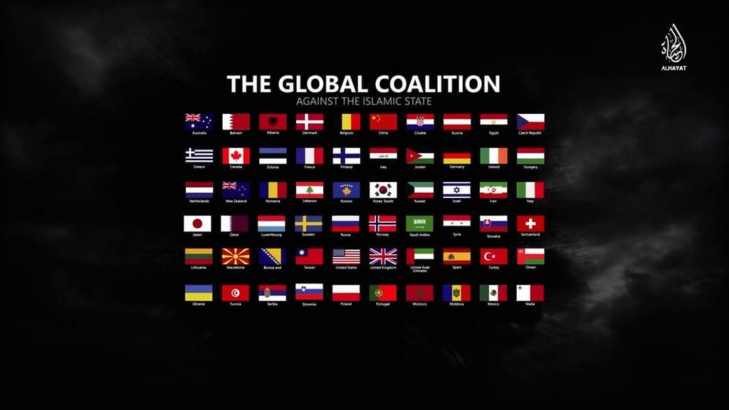 Videon lopussa Isis listaa 60 maata, jotka kuuluvat ”Isisin vastaiseen maailmanlaajuiseen koalitioon”. Suomi on yksi näistä maista, kuten myös Ruotsi, Norja, Tanska ja Viro.