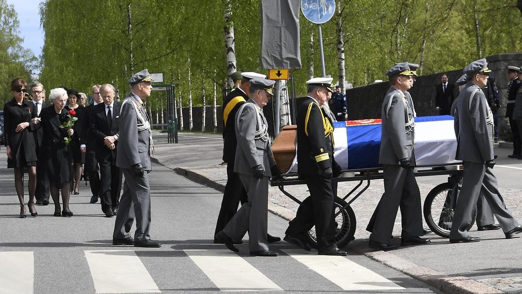 Poliisin lisäksi surusaattoa turvasi suuri määrä varusmiehiä, joista yhdelle pitkä paikallaan seisominen oli liikaa.