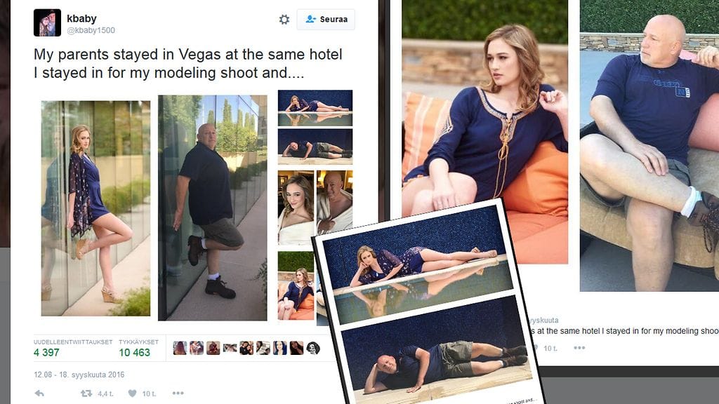 Vince teki sen, minkä kuka tahansa isä tekisi: hän poseerasi samoissa paikoissa täysin samalla tavalla kuin tyttärensä, kertoo BuzzFeed.