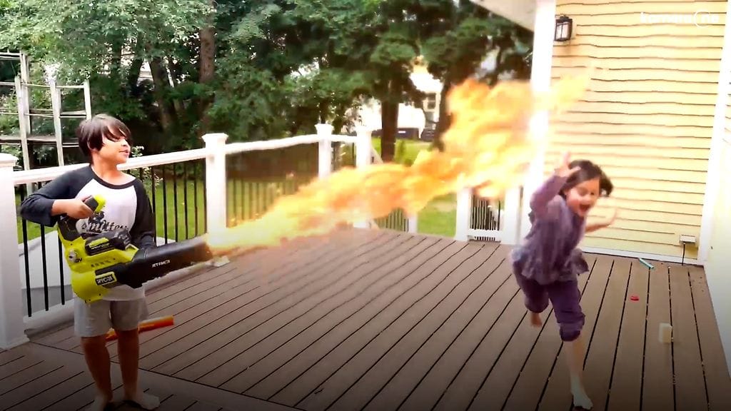 Daniel Hashimoton kekseliäästä nikkaroinnista uutisoi muun muassa New York Post. Hän on muuntanut takapihalle unohtuneen lehtipuhaltimen teipin ja silkkikankaan avulla leikkiliekinheittimeksi kahdelle lapselleen.